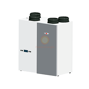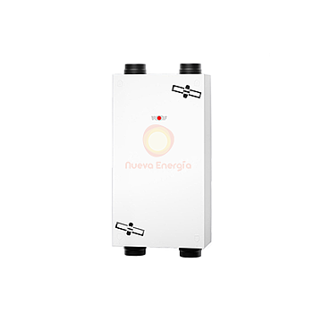 Ventilación centralizada Confortline con recuperación de calor, 4 conexiones arriba / 0 abajo. Izquierda a vivienda, derecha al exterior